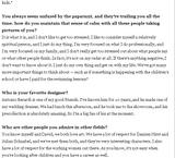 Dice que no va a hacer mas musica porque su pasion ahora es el diseño, que le encantaria diseñar bolsos y zapatos algun dia y que se junta a cenar con las Spice (el dia posterior a la entrevista).